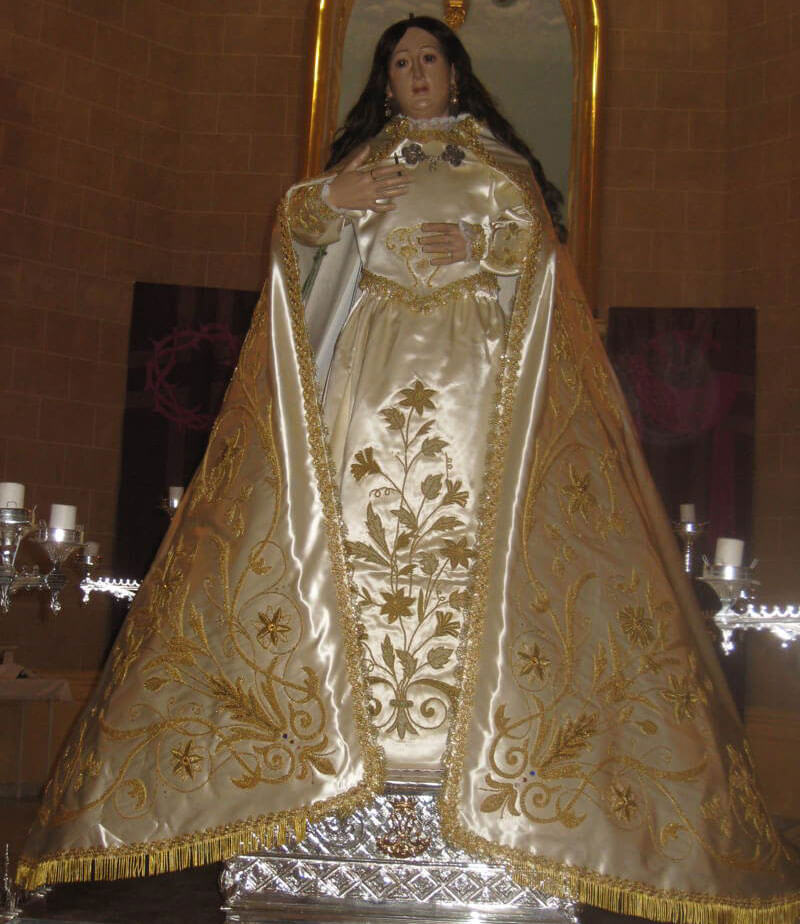 Imágenes únicas, españolas, de nuestro santoral, que reflejan el verdadero sentimiento religoso de nuestros clientes. También los mejores mantos y casullas y todo tipo de motivos religiosos.